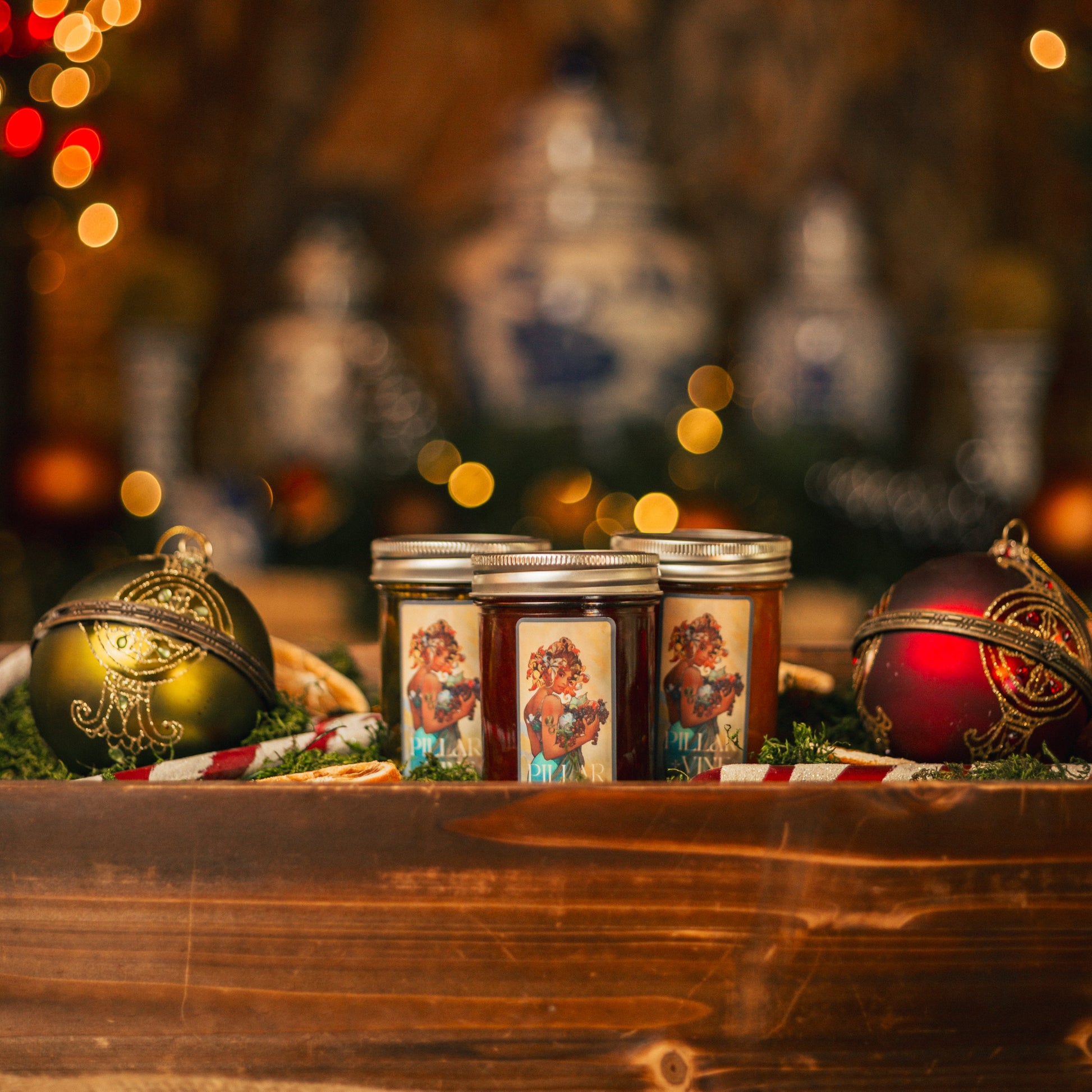 Includes 2 Pillar & Vine artisan jams and 1 jar of Bunny's Candied Jalapenos